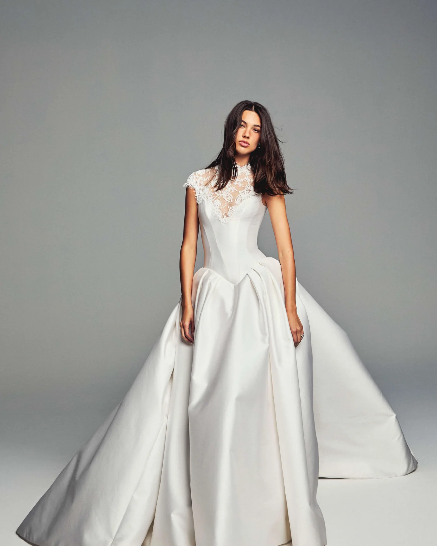 At the same time, architectural minimalism is becoming a dominant aesthetic, focusing on clean cuts, structured bodices and precise tailoring rather than heavy decoration. The emphasis is on silhouette and construction.